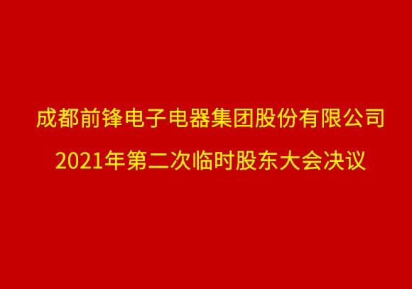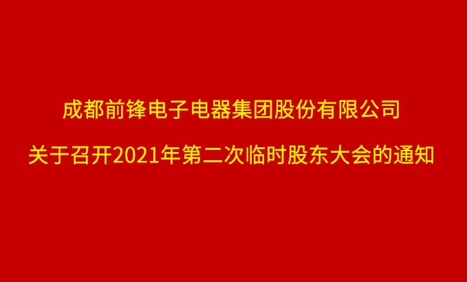 成都前鋒電子電器集團(tuán)股份有限公司關(guān)于召開2021年第二次臨時股東大會的通知 成都前鋒電子電器集團(tuán)股份有限公司(以下簡稱公司)第七屆董
