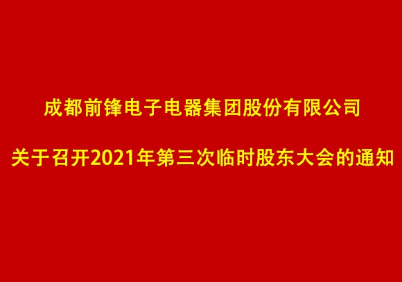 成都前鋒電子電器集團(tuán)股份有限公司關(guān)于2021年第三次臨時股東大會的參會通知