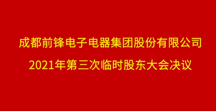 經(jīng)2021年11月1日成都前鋒電子電器集團(tuán)股份有限公司召開的2021年第三次臨時股東大會決議,成都前鋒電子電器集團(tuán)股份有限公司(統(tǒng)一社會信