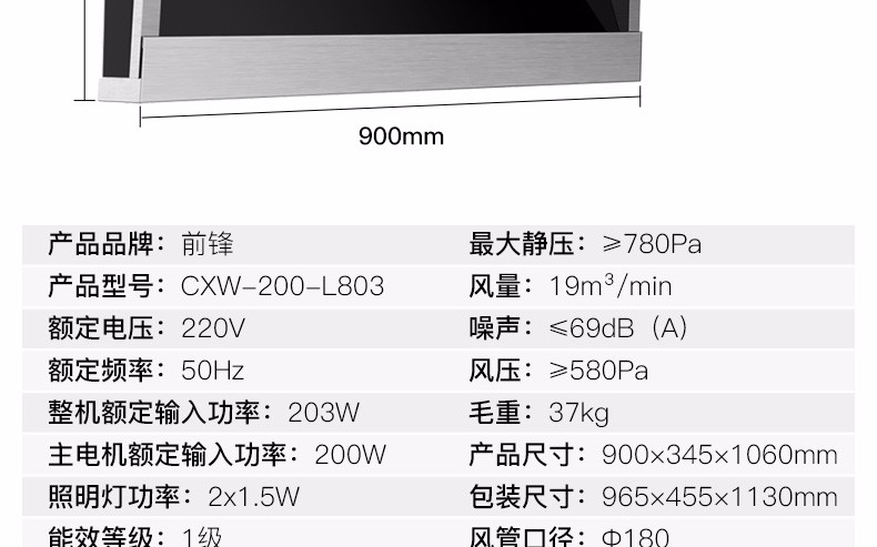 前鋒平板雙吸油煙機(jī)L803
