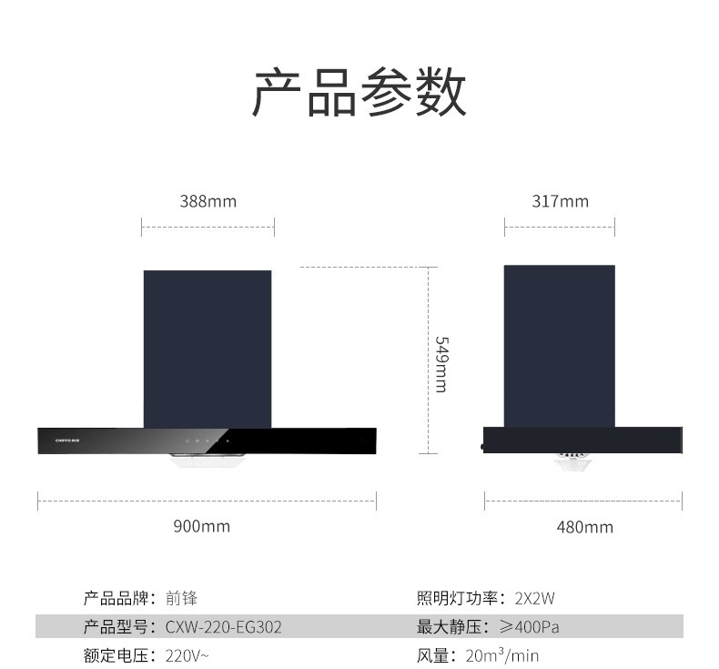 前鋒歐式吸油煙機(jī)EG302