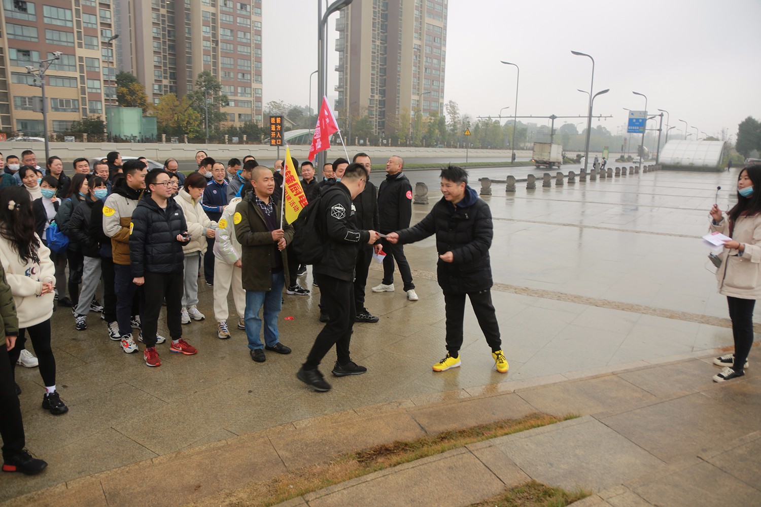 經(jīng)過近2個小時的競走活動,4支隊伍都完成了既定的沖刺目標。競走活動結(jié)束后,集團董事長楊鋼對獲得名次的隊伍進行了頒獎,并發(fā)表了動員講話。他說到,“今天的團建活動非常有意義,雖然下著小雨,但是前鋒戰(zhàn)士們,展現(xiàn)了高昂的熱情,驅(qū)走了雨水和寒冷,展示了前鋒人無畏沖鋒的精神!”