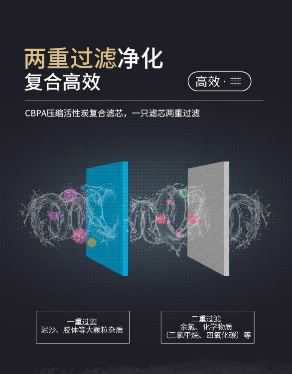CBPA復(fù)合濾芯整合了以前凈水器的2、3根濾芯