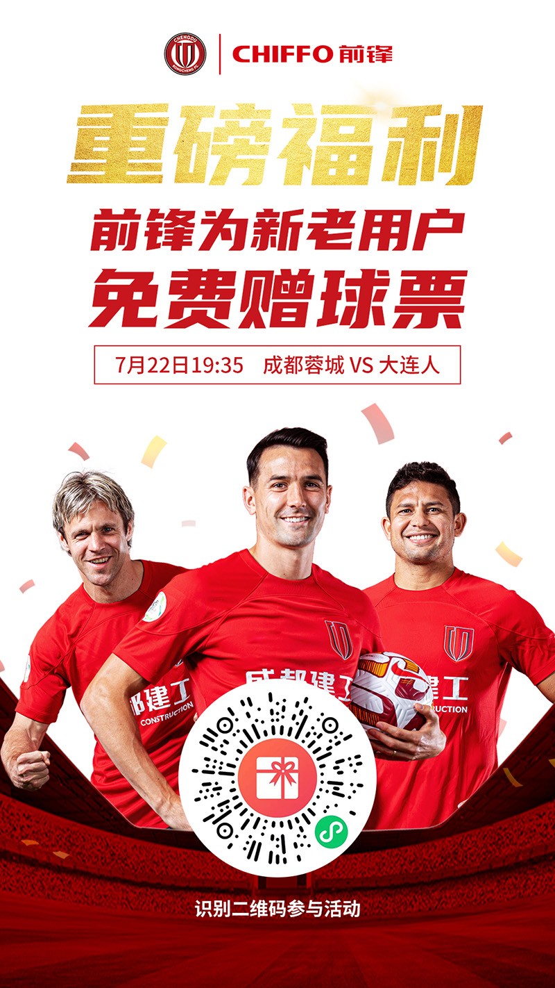 贊助期間,前鋒將在每次成都蓉城主場比賽前,開啟贈球票福利活動,只要參與我們的活動,就有機會加入前鋒觀賽團,感受最嗨的足球現(xiàn)場!